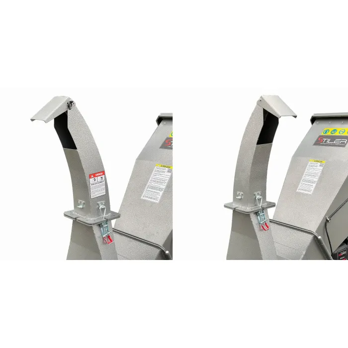 Дървесните стърготини се изхвърлят през изпускателния комин благодарение на центробежната сила, генерирана от барабана. Подходящият ъгъл на наклон на ножовете на барабана и контраножа осигурява автоматично събиране на материала в режещата камера.