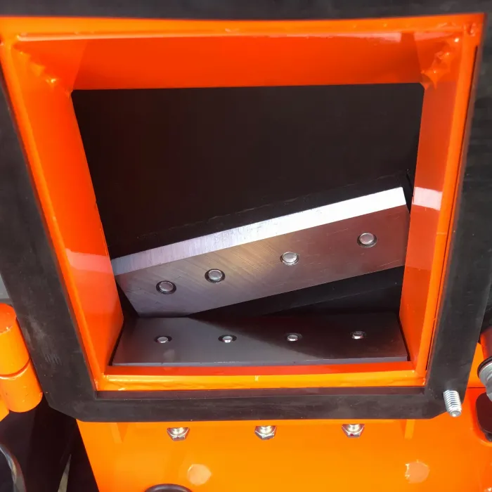 Дробилката е оборудвана с 2 предпазни превключвателя, единият от които е разположен на входната фуния, а другият на горния предпазител на острието (предотвратява стартирането на дробилката, когато предпазителят е повдигнат).