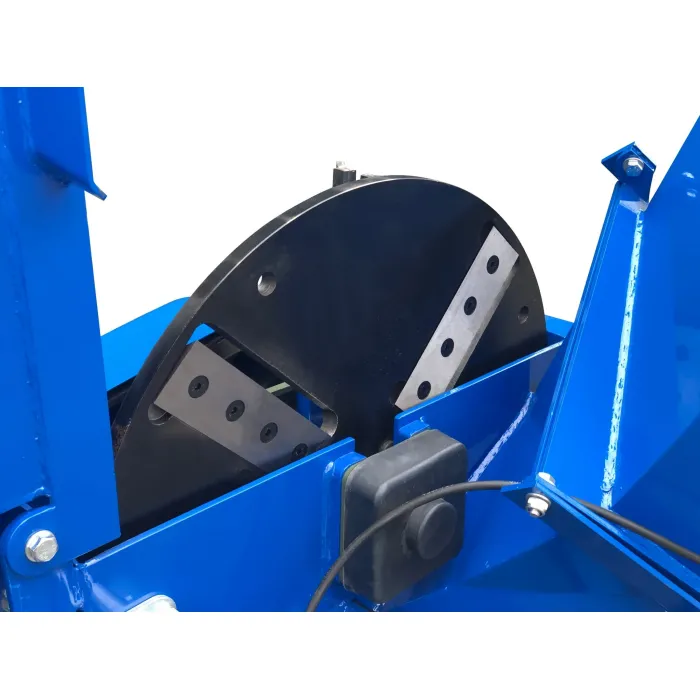 Задната част на ротора е оборудвана със специални лопати, които спомагат за ефективното изхвърляне на дървесните стърготини от машината. Освен това, вътре в корпуса на ротора са монтирани прекъсвачи за клонки. Машината е оборудвана с авариен изключвател, който спира задвижването на силоотводния вал, което повишава безопасността и комфорта на работа. 4 режещи ножа (заточени от двете страни) осигуряват ефективна работа на машината. Остриетата са изработени от закалена инструментална стомана. Освен това машината има един контранож, монтиран на корпуса на ротора.