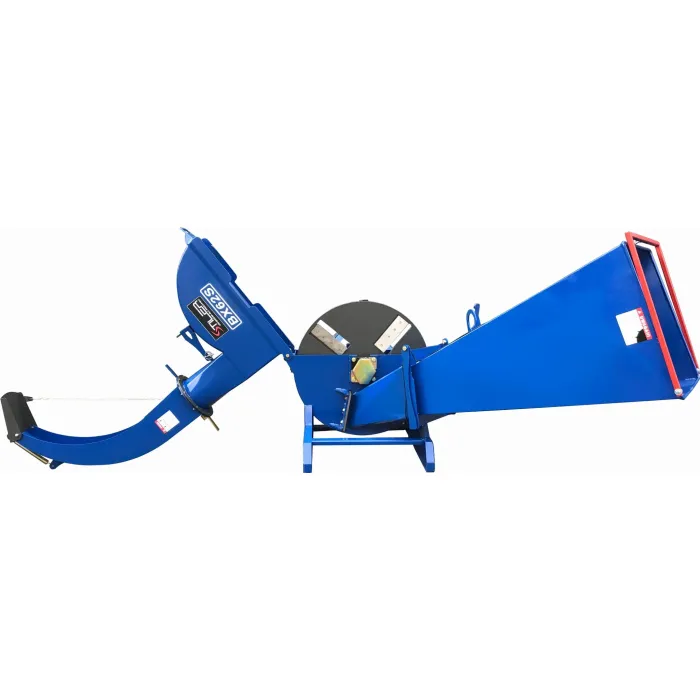 Произведените дървесни стърготини се изхвърлят през тръба, завъртяна на 360° спрямо основата на дробилката.