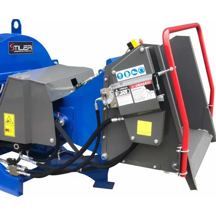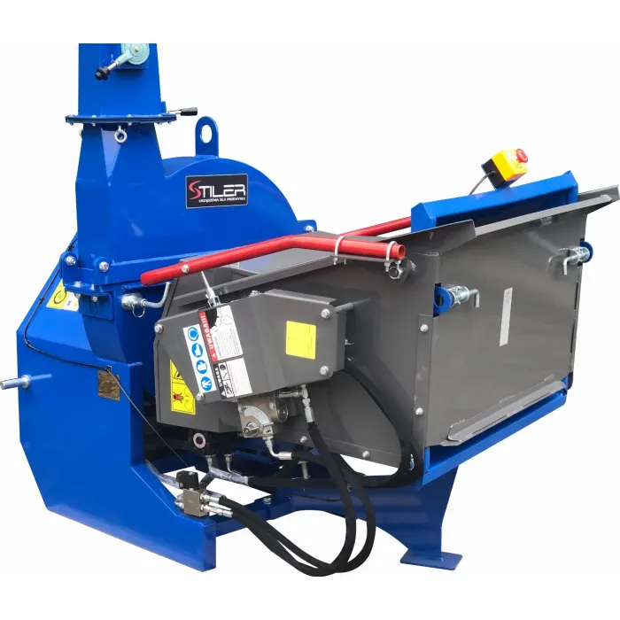 Новата версия на дробилката е допълнително оборудвана със собствена хидравлична помпа и резервоар за хидравлично масло, захранващо два ролка, подаващи материала към ножовия диск. Машината има собствена хидравлична помпа с вграден резервоар за хидравлична течност. Целият механизъм се задвижва от карданен вал от трактора. Мощна дробилка, оборудвана с хидравлична система за подаване на материал със собствена помпа. Дробилката е оборудвана с редица подобрения за подобряване на безопасността и ефективността на работа, съгласно най-новите директиви на ЕС.