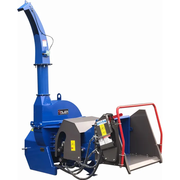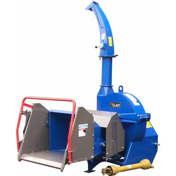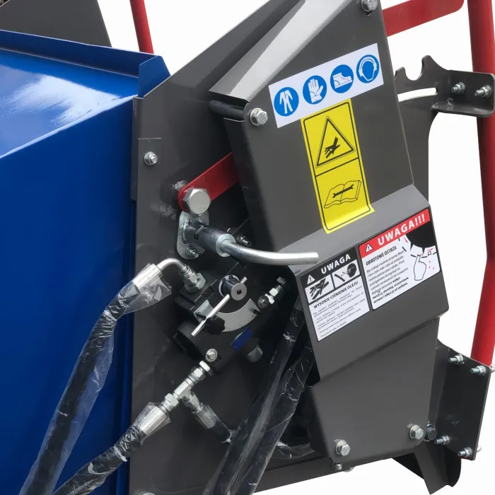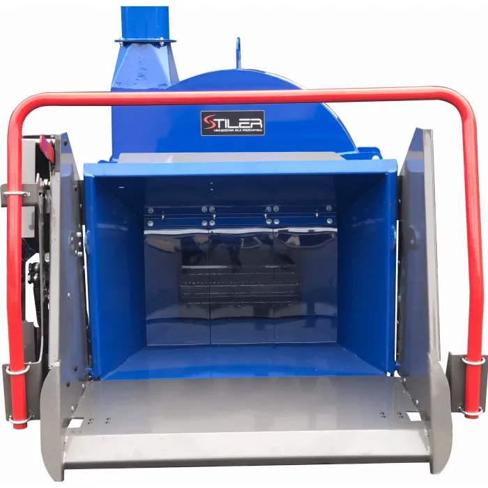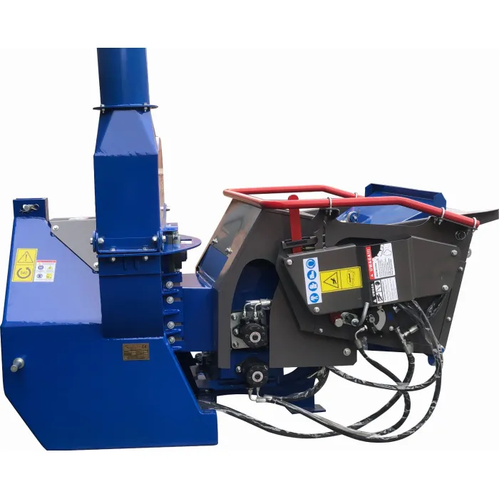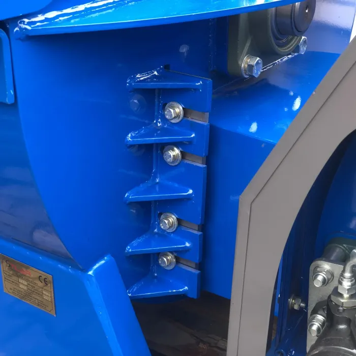 Остриетата са изработени от твърда инструментална стомана. Машината има 1 контранож. Задната част на диска е оборудвана с прекъсвачи и изхвърлящи лопати за по-ефективно изхвърляне на дървесните стърготини от машината. Дробилка е предназначена за раздробяване на клони и стволове на дървета с диаметър до 25 см. По-нов, по-здрав модел. Оборудвана с хидравлична система от ново поколение с надеждни разпределители ! 4 ножа, заточени от двете страни, осигуряват много висока ефективност и издръжливост на машината.