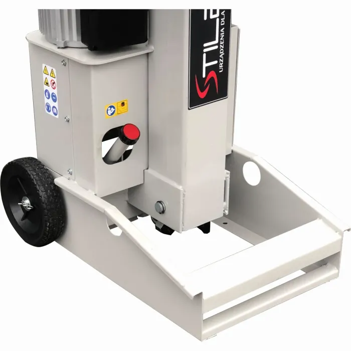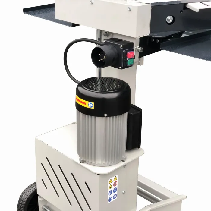 Двойната дръжка осигурява безопасна работа в съответствие със стандартите на ЕС. Сплитерът е оборудван със солиден, безотказен електрически двигател с мощност 3.0 KW и напрежение 230 V. Транспортните колела ви позволяват лесно да местите машината по павирани повърхности. Освен това, машината е оборудвана със странични маси. Ъгловият клин улеснява потъването му в материала.