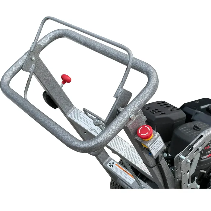 Спирачката , поставена в едното колело, гарантира, че фрезата няма да се отдалечи по време на работа.