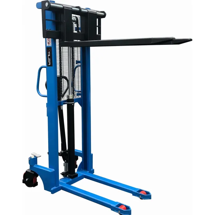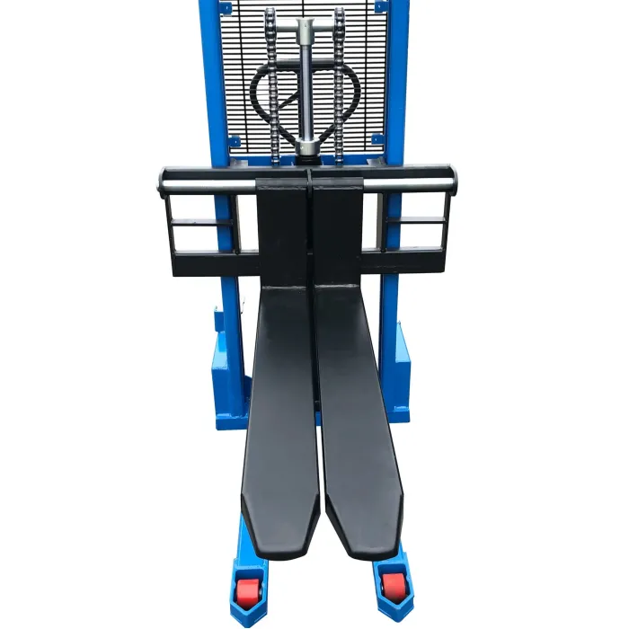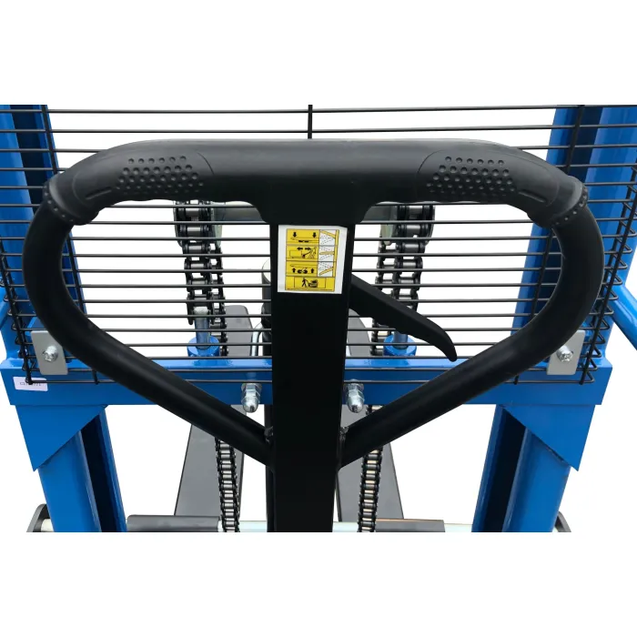 Разстоянието между вилиците може да се адаптира към нуждите на оператора. Полиуретановите колела осигуряват лесно управление. Едното от колелата има спирачка. Количката е снабдена с дръжки, които осигуряват удобно използване на устройството. Ръчните палетни стакери се използват във вътрешен транспорт, както в магазини, работилници, складове, спедиция, така и в промишлени предприятия. Характеризират се с надеждна и лека конструкция, което ги прави чудесен инструмент за преместване на товари до 2000 кг. Устройството разполага с вили с дължина 1150 мм .