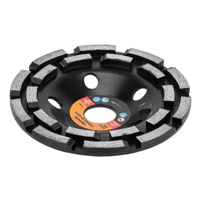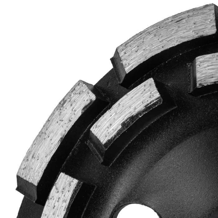 Ефективно почиства фуги и шевове, елиминира големи дефекти, премахва увисване, премахване на дебел слой материал. Диамантените сегменти са подредени в 2 реда, което в комбинация с дебелината на работния слой от 4,5 мм осигурява висока производителност. Използва се за груба обработка на повърхности от бетон, мрамор, гранит, камък и тухли.