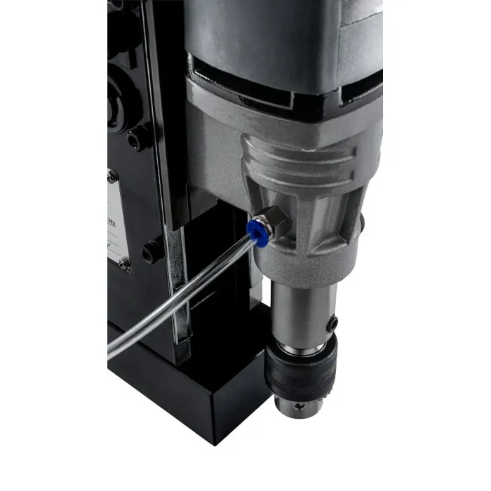 Магнитната основа позволява устройството да бъде здраво закрепено към стоманени повърхности без допълнителни монтажни елементи. Магнитната сила от 11 500 N държи свредлото на място при хоризонтално, вертикално или отдолу пробиване.