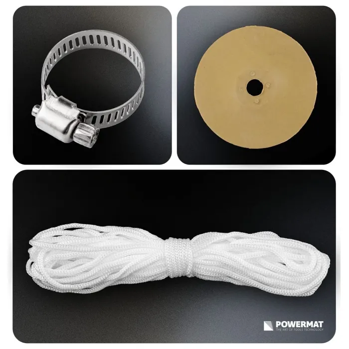 Комплектът включва и скоба, необходима за правилното свързване на маркуча. С тези аксесоари можете да започнете работа веднага, без да е необходимо да купувате допълнителни компоненти.