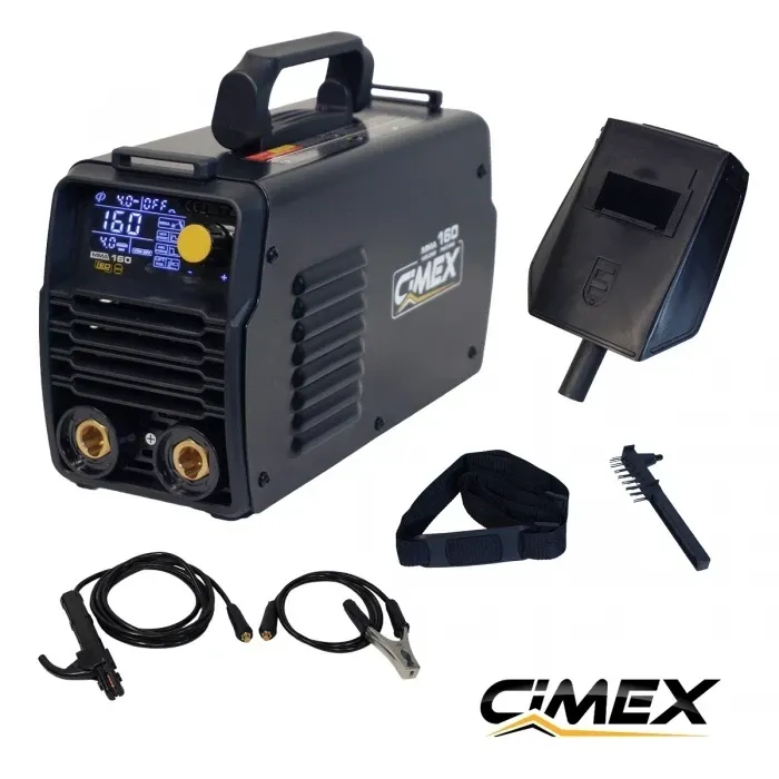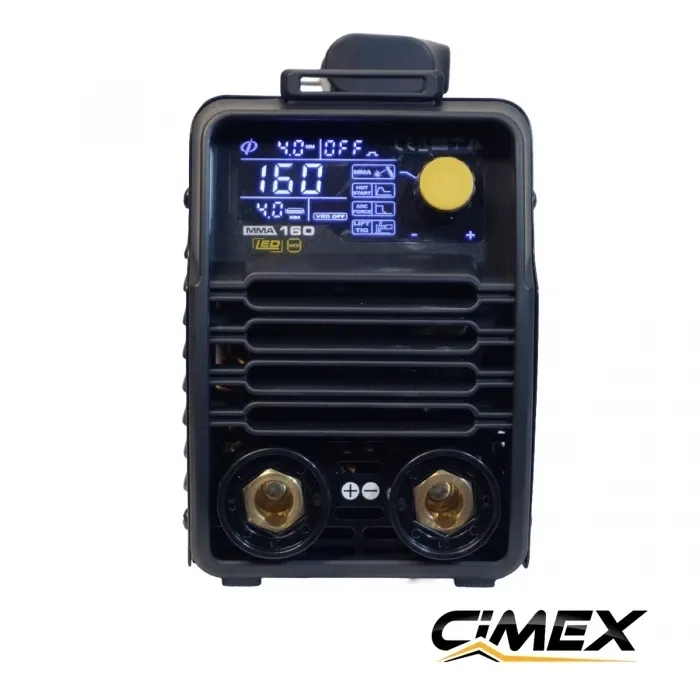 Машината работи в диапазон на заваръчния ток от 10A до 160A, като разполага с LED дисплей за точно настройване и следене на параметрите в реално време. Благодарение на оптимизирания работен цикъл – 30% при 160A, 60% при 113A и 100% при 88A, електроженът осигурява надеждна работа дори при продължително натоварване. Инверторният електрожен CIMEX MMA160 е съвременно решение за ръчно електродъгово заваряване (MMA), което комбинира IGBT инверторна технология, компактен дизайн и разширени функции за по-лесна и прецизна работа. Подходящ е както за домашни майстори, така и за професионалисти, търсещи стабилна дъга и контрол върху заваръчния процес.
