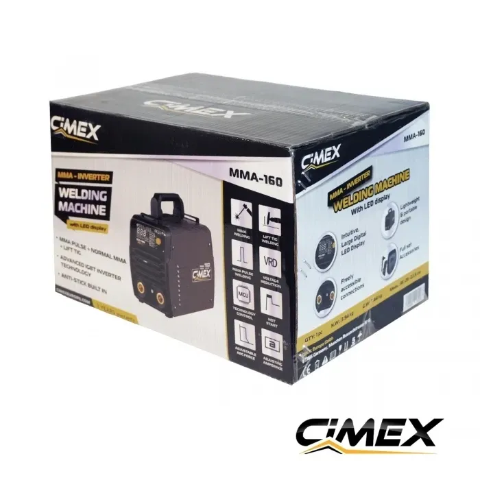 Инверторен електрожен CIMEX MMA-160 Pulse MMA с Lift Tig функция и LED дисплей/ 160A