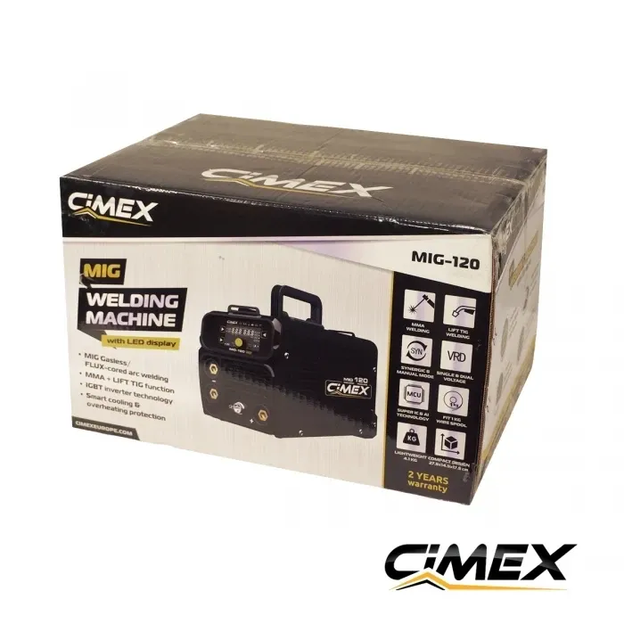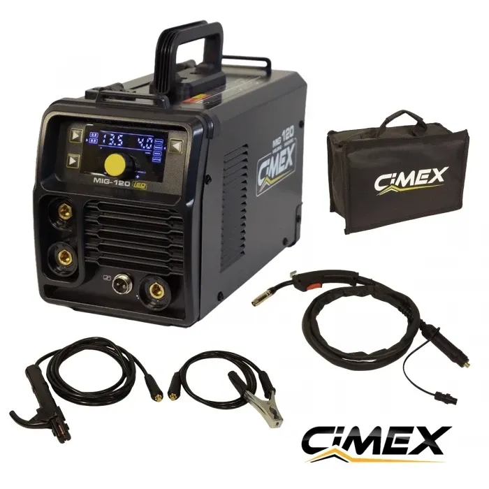Моделът е създаден за мобилна работа, монтажи на място и ежедневни ремонтни дейности, където компактните размери и лесната настройка са по-важни от индустриалния капацитет. Ако търсите телоподаващ апарат без газ, който да е лек, компактен и подходящ за сервизни и гаражни ремонти, CIMEX MIG-120 е практично решение в клас 120 ампера. Това е инверторно телоподаващо 220V, което работи с флюсова тел (FLUX), без необходимост от газова бутилка, и комбинира три процеса в една машина.
