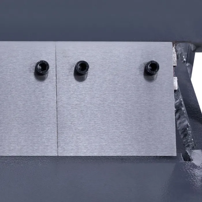 Машината за огъване разполага с предварително пробити монтажни отвори в основата, които ви позволяват да закрепите спирачката към работната маса или пода с помощта на винтове. Предотвратява изместването по време на употреба за по-точно огъване без необходимост от ръце.