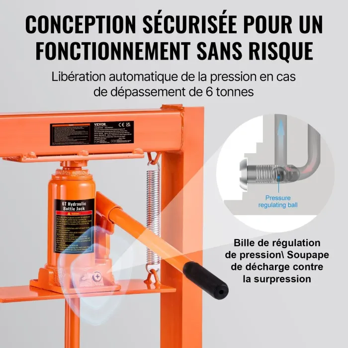 Хидравличният крик с вграден предпазен клапан е вашият перфектен партньор за тежки задачи. С интелигентен дизайн, който гарантира вашата сигурност, този крик няма да ви разочарова, когато е необходимо. Предпазният клапан се задейства автоматично, когато налягането надвиши 6T, предотвратявайки повреди по работната маса, причинени от свръхналягане.