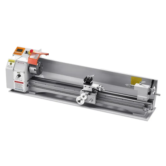 С максимална скорост от 2500 об/мин и променлив контрол на скоростта, нашият струг за метал позволява регулиране на скоростта на обработка въз основа на материала и процеса за оптимална точност. Дръжката на задното седло и подвижният център разполагат с прецизни скали за фино настроен контрол по време на прецизна работа.