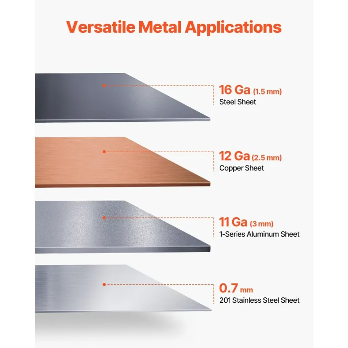 Огъващия механизъм за кутии и плоски огъвания поддържа различни материали, включително мека стомана, неръждаема стомана, мед и алуминий. Той може ефективно да огъва листове от мека стомана с дебелина 1,5 мм (16 gauge). Машината за ламарина може лесно да огъва метални листове с ширина до 24 инча с ъгли на огъване от 0° до 135°, идеален за малки „Направи си сам“ проекти и работилнически задачи.