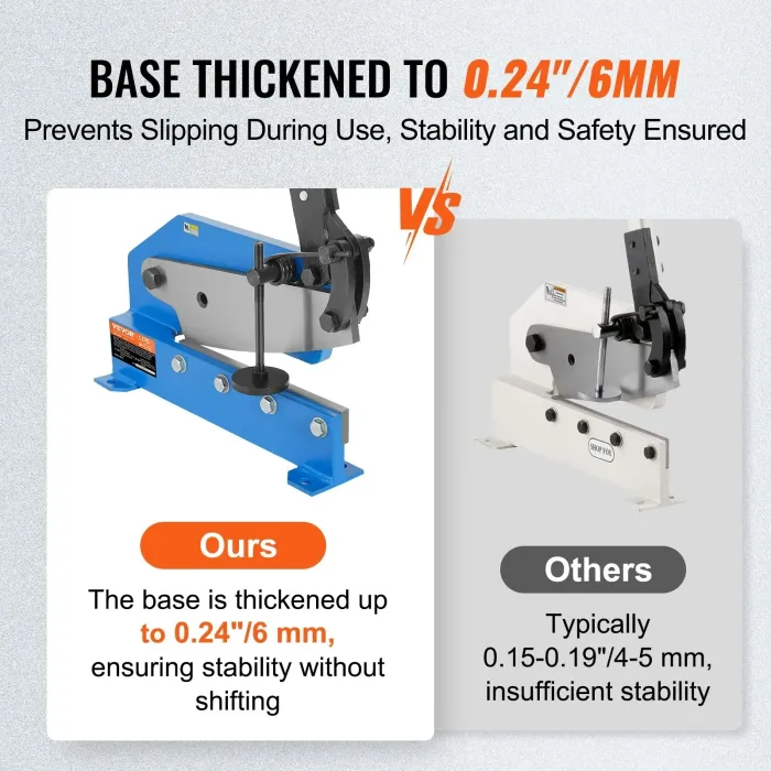 Твърдост на острието: >52HRC; Дебелина: 0.47"" / 12 мм. Може лесно да обработва различни твърди метални листове, като нисковъглеродна стомана, стоманени пръти, алуминиеви плочи, плочи от алуминиеви сплави, електропоцинковани плочи, калайдисани плочи, композитни стоманени плочи, цветно покрити стоманени плочи. Тази гъвкавост прави работата ви по-удобна.