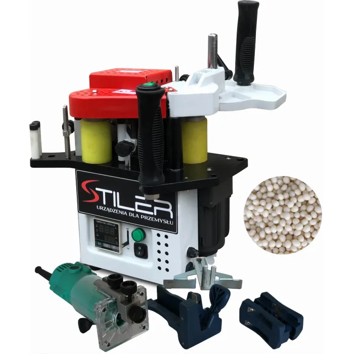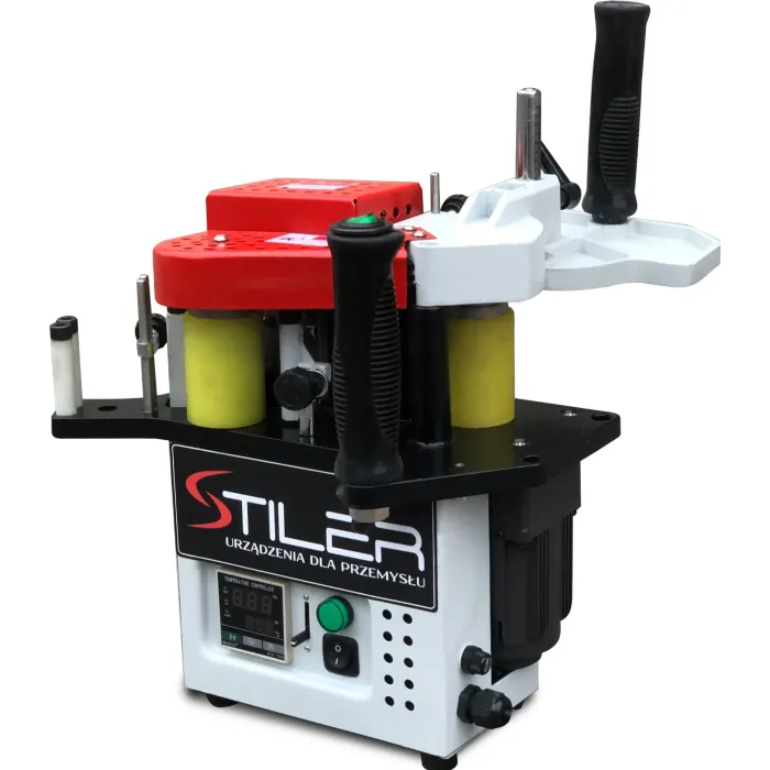Машината е с плавно регулиране на работната скорост. Височина на залепване до 55 мм. Работата с устройството и пълненето на лепилни гранули е много лесно. Поради малкия си размер, кантиращата машина е удобна за преместване. Кантиращата машина STILER може да се използва за покриване на прави или кръгли PVC, меламинови или дървени елементи. Оборудван е с дисплей, показващ текущата температура.