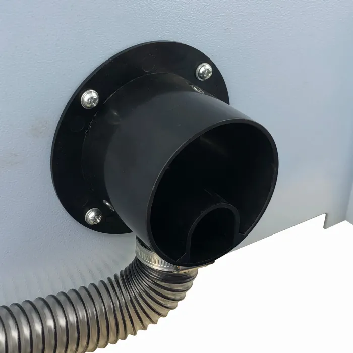 Трионът има предпазител за острието на триона, който допълнително може да бъде свързан към всмукател.