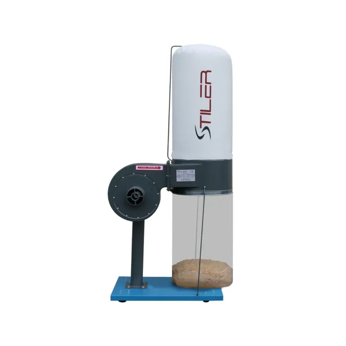 Устройството е идеално за сътрудничество с всички видове рендосващи машини, дебелорезни машини, фрези и лентови триони. ПОДСИЛЕНА МЕТАЛНА ТУРБИНА ОТ НОВО ПОКОЛЕНИЕ, работеща с 2800 об/мин., извлича стружки и дървени стърготини с капацитет 1000 м3/ч. Системата за изсмукване на стърготини и стружки STILER FM230, благодарение на компактния си размер и здрава конструкция, ще се използва във всяка дърводелска работилница. Тя е пригодена за работа с дърводелски машини при обработка на дърво.