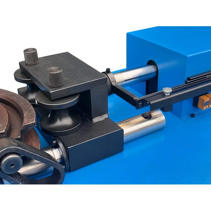 В автоматичен режим, машината сама притиска копитото до необходимото разстояние. Разстоянието на натиск зависи от диаметъра на тръбата. Благодарение на регулируемия краен изключвател, можем да настроим подходящото налягане.