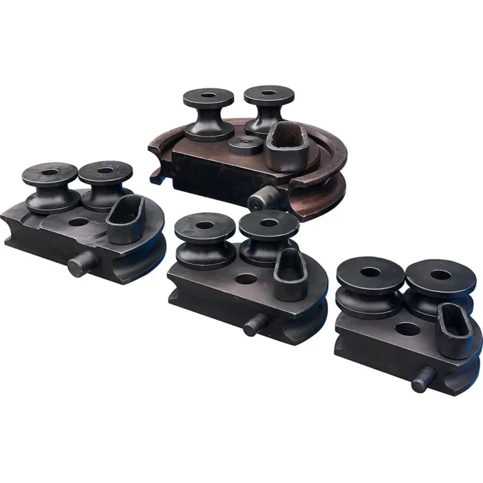 Към машината прикрепяме 4 комплекта матрици за огъване на черни стоманени тръби със следните диаметри: