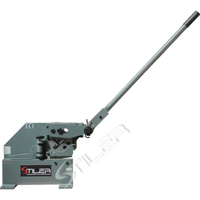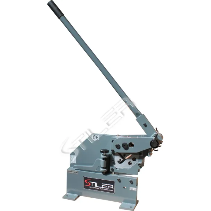 Ръчни гилотинни ножици за рязане на ламарина, профили и пръти с кръгло и квадратно напречно сечение. Стабилна структура, позволяваща ефективно рязане - не изисква много сила Острие, изработено от закалена инструментална стомана. Регулируемо налягане. Устройството е изработено от стоманени плочи. Гилотинните ножици STILER PBS-7 са предназначени за ръчно рязане на ламарина, профили и пръти. Гилотинните ножици STILER PBS-7 могат да се използват успешно в ключарски работилници или строителни обекти. Универсално острие за рязане на листове, плоски пръти и арматурни профили.