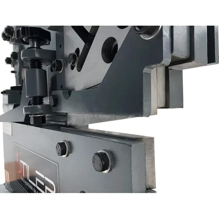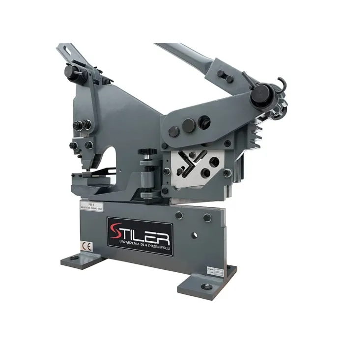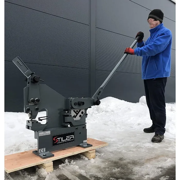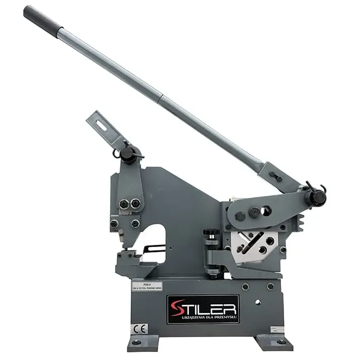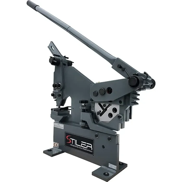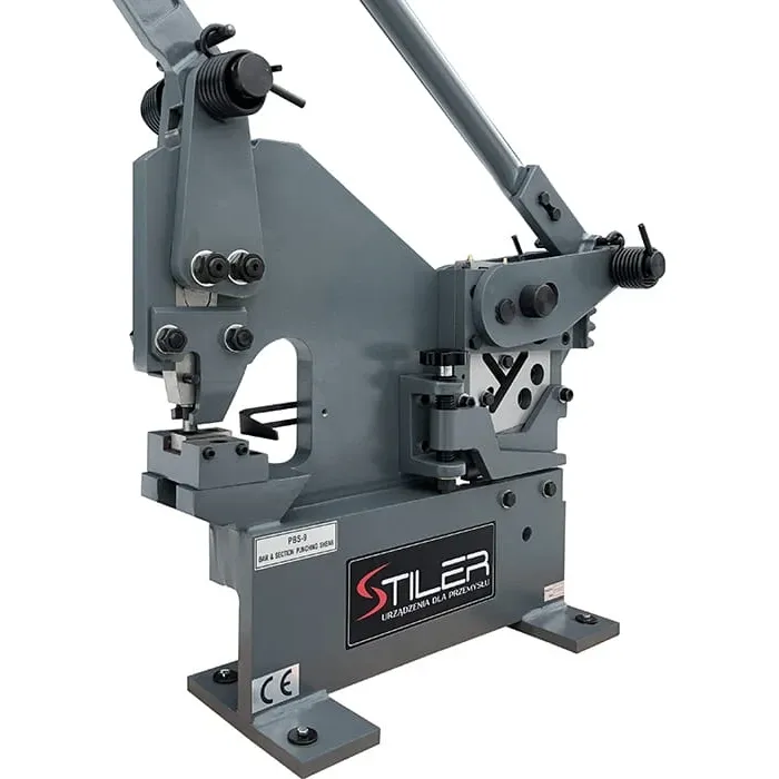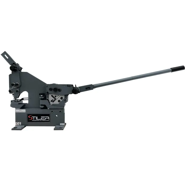 Ръчни гилотинни ножици за рязане на ламарина, профили и пръти с кръгло и квадратно напречно сечение. Машина за щанцоване на ламарина. Стабилната конструкция позволява ефективно рязане - не изисква много сила. Острие, изработено от закалена инструментална стомана. Регулируемо налягане. Устройството е изработено от стоманени плочи. Гилотинните ножици са предназначени за ръчно рязане на ламарина, профили и пръти, както и за пробиване на отвори. Гилотината STILER PBS9 може да се използва успешно в ключарски работилници или строителни обекти.