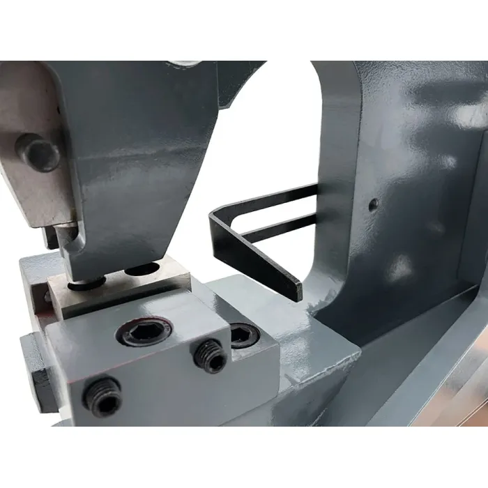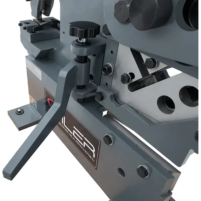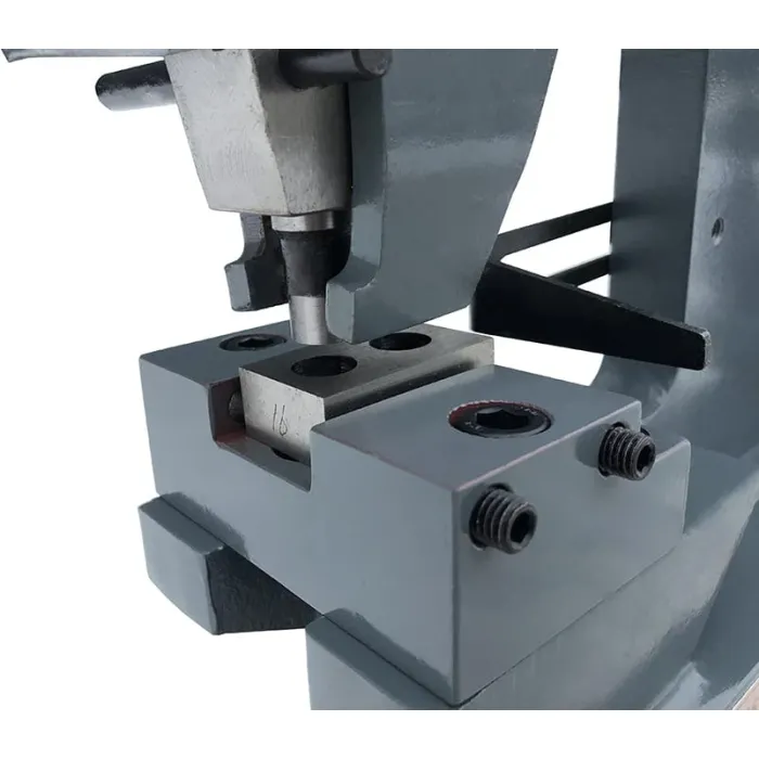 Освен това, машината има функция за пробиване на отвори в листа до 5 мм. Диаметърът на пробивания отвор е 16 мм. Възможно е да се монтират и други матрици от 3 мм до 22 мм.