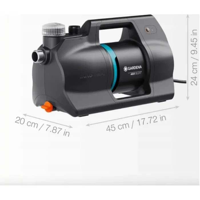 Автоматичната помпа за дома и градината 4600 Silent е проектирана да доставя автоматично необходимото количество вода и налягане до всяко място в градината, където може да ви е необходимо. Все едно ви помагат. Функциите за автоматично включване/изключване позволяват и използването на външни планировчици за напояване, които са необходими за домашна употреба.