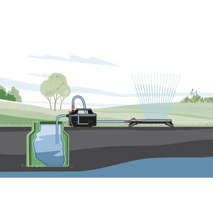 Благодарение на ергономичната дръжка, е лесна за пренасяне и подходяща за мобилна употреба в градината. Градинската помпа е с мощност 600 W, работно налягане 3.9 бара и максимален дебит 5300 л/ч. Може да изпомпва вода от дълбочина до осем метра. Проектирана е за напояване, повишаване на налягането или изпомпване на чешмяна, дъждовна или хлорирана вода от плувни басейни. Помпата е оборудвана с термичен прекъсвач, който предпазва мотора от претоварване, и корпус с двойно уплътнение за по-голяма здравина.