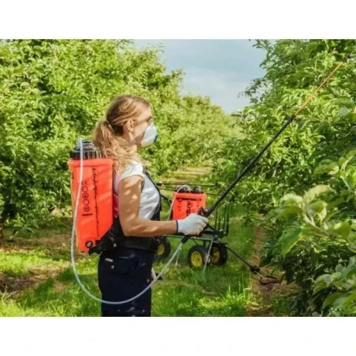 Притежава телескопичен прът с регулиране на дължината от 0.6 до 1.2 м. Пръскачката има капацитет 15 л, като резервоарът е предназначен за продължителна работа. Подходяща е за разпръскване на течни препарати за защита в овощни градини, горски плантации и всякакви други обширни декоративни и селскостопански насаждения. Оборудвана е с ергономичен лост, чрез който с минимално усилие се поддържа налягането. Има удобна раменна система за максимален комфорт при продължителна работа.