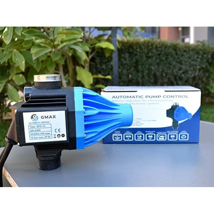 Подходящ е за окомплектоване на помпи в хидрофорен режим. Входът е с външна резба 1″ и 11/2″, а изходът е с вътрешна резба 1″ . Максималното налягане на помпата не трябва да надвишава 10 бара, а нейният стартов ампераж е важно да бъде по-нисък от 16 А, при температура на водата не по-висока от 55 С°. Пресконтролът EPC-13 автоматизира процеса на включване и изключване на помпата по налягане. Вградения сензор предпазва помпата от работа при липса на воден поток и удължава нейния живот. Фабрично е зададена стартова граница от 1.5 бара, която потребителят може да променя в определени граници. При първото пускане на предварително обезвъздушената система, устройството запаметява максималното налягане осигурено от помпата при нулева консумация, на която е монтирано.