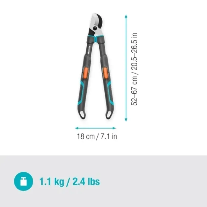 Ергономично проектирани и леки, телескопичните ножици за дървета GARDENA TeleCut Pro разполагат с ергономични алуминиеви дръжки за удобно и без умора подрязване на зелена дървесина. Вграденият буфер за китката предотвратява треперенето на китката при рязане, предпазвайки ставите на потребителя, като същевременно подобрява комфорта. Телескопичният спусък е монтиран в лесен достъп на дръжката. Идеални за по-малки ръце.