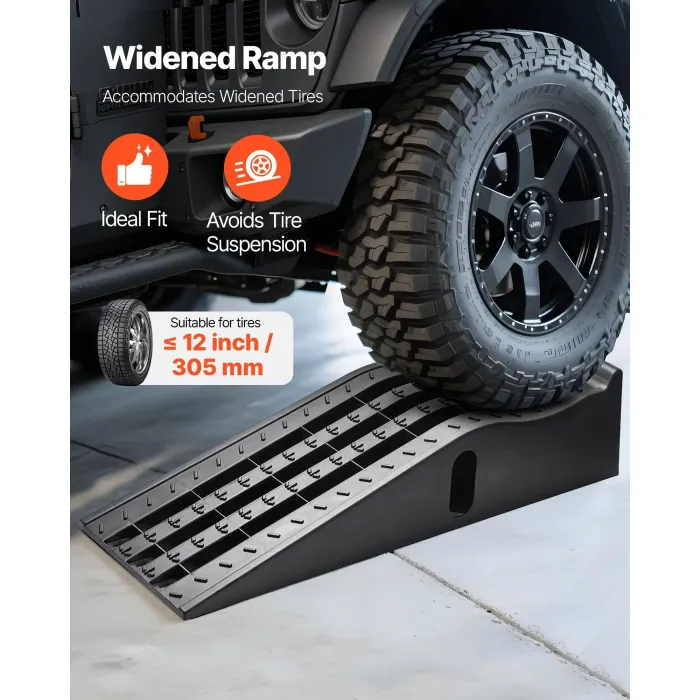 Проектирани с повдигане от 6,1 инча и наклон от 17°, тези рампи за повдигане на автомобили са идеални за превозни средства с по-високо шаси, като средноразмерни SUV-ове, камиони и джипове. Повдигнатият дизайн осигурява достатъчно пространство, като същевременно се избягва стържене на долната част.