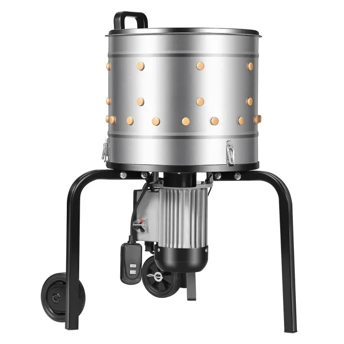 Тази електрическа машина за премахване на пилешки пера се предлага с подвижен барабан за лесно почистване с четка и измиване с високо налягане. Гладки вътрешни стени за цялостно почистване, спестявайки време и усилия, докато 3-те долни меки пръста помагат за изстъргване на пера и предотвратяват запушвания.