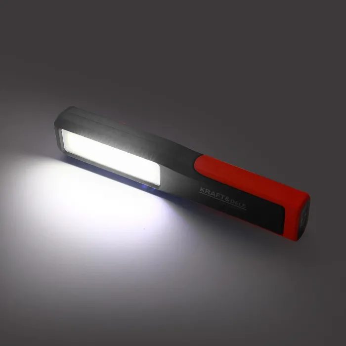Лампата е оборудвана с регулируема магнитна стойка и кука за окачване, което позволява удобното ѝ позициониране в различни позиции. Благодарение на електронната система за управление, потребителят може да избира от три варианта за осветление , регулирайки интензитета на светлината според нуждите си. Зареждането се осъществява чрез модерен USB-C порт , а кабелът е включен в комплекта. Лампата за работилница KRAFT&DELE KD3494 е практичен и преносим източник на светлина, идеален както за професионални работилници, така и за домашна употреба. Благодарение на вградената литиево-йонна батерия 18650 и модерния LED панел, устройството осигурява дълга и ефективна работа без необходимост от постоянно захранване.