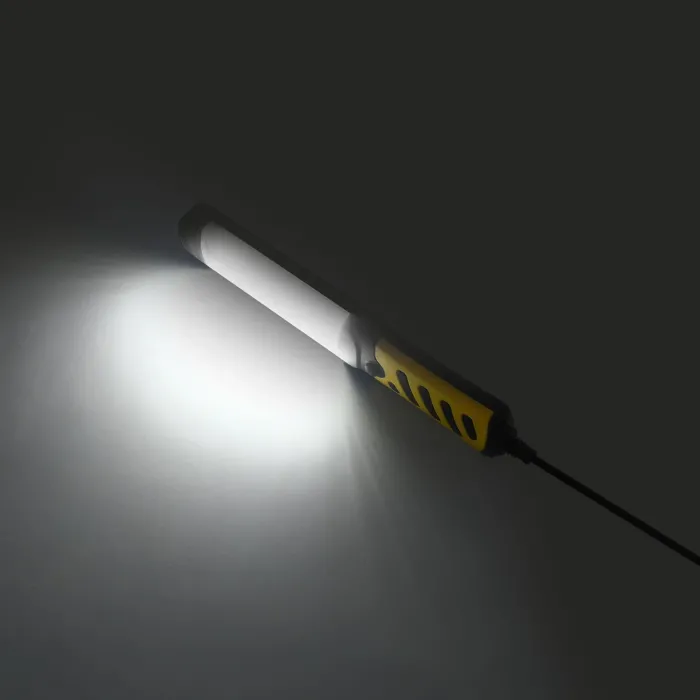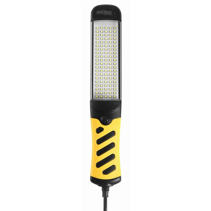 Здравият корпус от ABS и PC гарантира устойчивост на механични повреди, а дългият 10-метров кабел позволява комфортна работа. Фенерчето е оборудвано с практична кука за окачване и магнит на гърба, което позволява бързо и удобно закрепване към метални повърхности. Фенерът за работилница KRAFT&DELE KD3492 е практичен и ефикасен източник на светлина, идеален за работа в гаража, работилницата или на строителна площадка. С мощност от 20 W и 100 2835 светодиода, той осигурява ярко и равномерно осветление при всякакви условия.