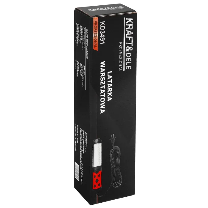 Здравият корпус от ABS и PC гарантира устойчивост на механични повреди, а дългият 5-метров кабел позволява комфортна работа. Фенерчето е оборудвано с практична кука за окачване и магнит на гърба, което позволява бързо и удобно закрепване към метални повърхности. Фенерът за работилница KRAFT&DELE KD3491 е практичен и ефикасен източник на светлина, идеален за работа в гаража, работилницата или на строителни обекти. С мощност от 20 W и 100 2835 светодиода, той осигурява ярко и равномерно осветление при всякакви условия.