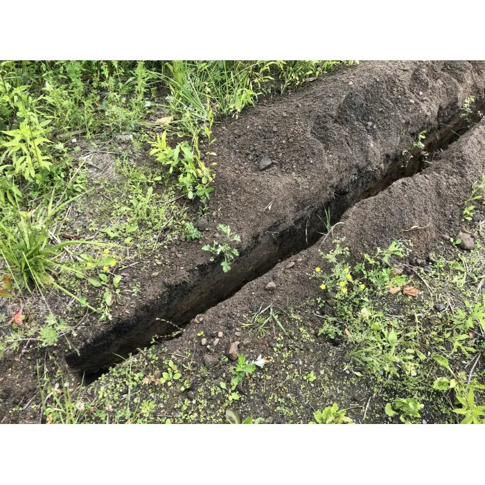 Шнекът отстранява излишния материал настрани, оставяйки чист изкоп, готов за по-нататъшна работа.