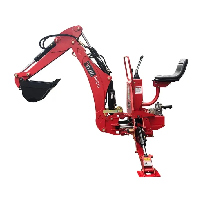 Навесният багер STILER BK215 е предназначен за работа със селскостопански трактор. Той се прикрепя към трактора чрез триточкова навесна система (TUZ) и се задвижва от хидравличната помпа на трактора. Дългото рамо ви позволява да копаете на дълбочина 220 см под нивото на земята. Обхватът на ръцете е 320 см .