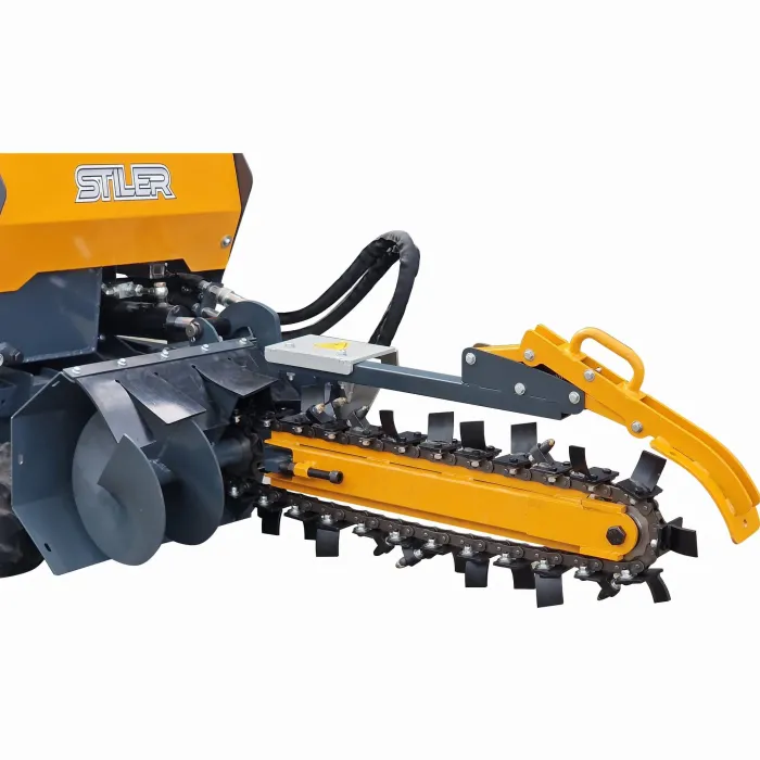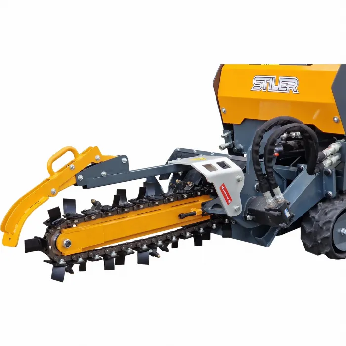 Мощен двигател с мощност 19,5 к.с. задвижва верига, оборудвана със синтерован карбид и остриета. Максималната дълбочина на изкопа е до 60 см. Машината е оборудвана със собствено хидравлично задвижване на въртящия се ход. Главата се управлява от хидравличен задвижващ механизъм. Веригата се задвижва от хидравличен мотор. Самоходният каналокопател STILER е идеална алтернатива на класическите багери. Каналокопател, задвижван изцяло от двигател с вътрешно горене и хидравлична система. Каналокопателите се характеризират с много по-бърза и удобна работа при копаене на траншеи за например електрически кабели, тръби, системи за отводняване на вода.