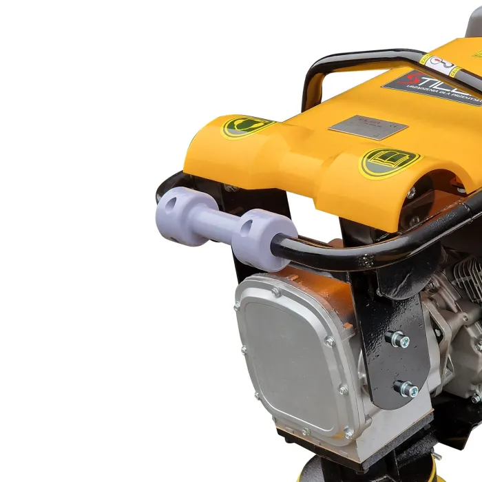Омекотената рамка за управление гарантира, че операторът няма да усети никакви негативни ефекти от вибрациите. Рамката има горна дръжка за по-лесно товарене и разтоварване с помощта на външни машини. Голямото вибриращо краче повишава ефективността на работа. Размери на стъпалото ширина х дължина: 28 х 33 см Вграденият валяк улеснява независимото товарене и разтоварване на компактора от камион/ремарке.
