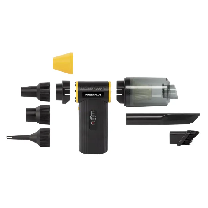Компактният инструмент за почистване работи с батерия, така че може да се използва навсякъде. Той предлага пълна мобилност за всяка задача. Тази мощна 8 V мини прахосмукачка и духалка от линията Powerplus е лесна и удобна за употреба. Благодарение на включените приставки, можете лесно да адаптирате устройството към всяка задача за почистване, включително почистване на автомобилните седалки или издухване на прах от клавиатурата.