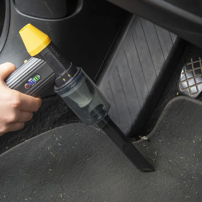С всмукателна мощност от 15,7 kPa, тази ръчна прахосмукачка и духалка лесно премахва прах и трохи от маси, пукнатини, мебели и други. Тъй като е захранвана от батерии, тя е особено удобна за употреба на места без контакт, като например в колата ви.