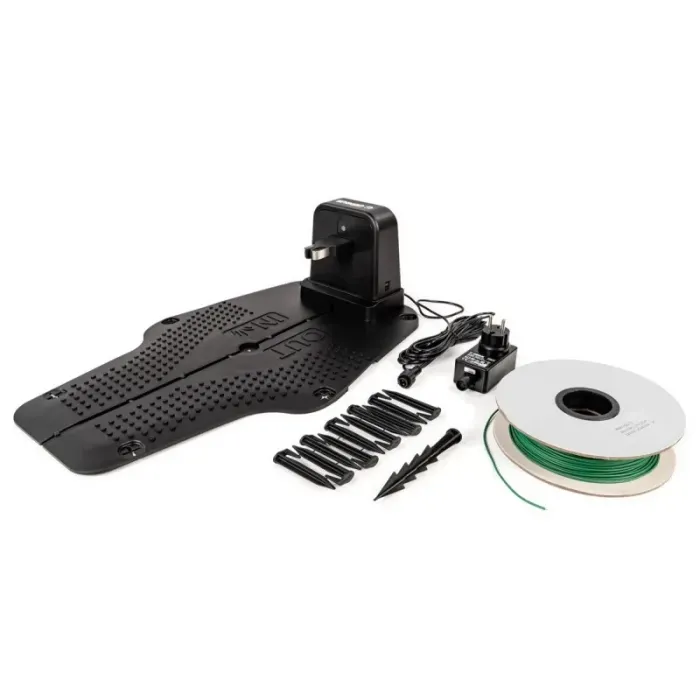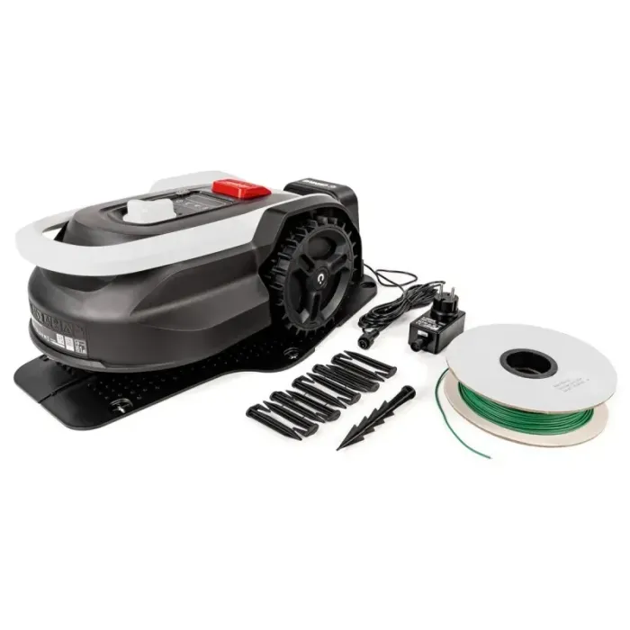 Включено в комплекта Ограничителен кабел 100 м; Колчета за кабел 130 бр.; Резервни ножове 6 бр., 20V литиево-йонна батерия 2Ah