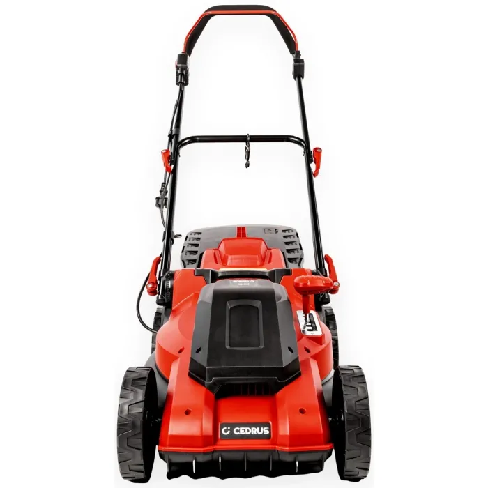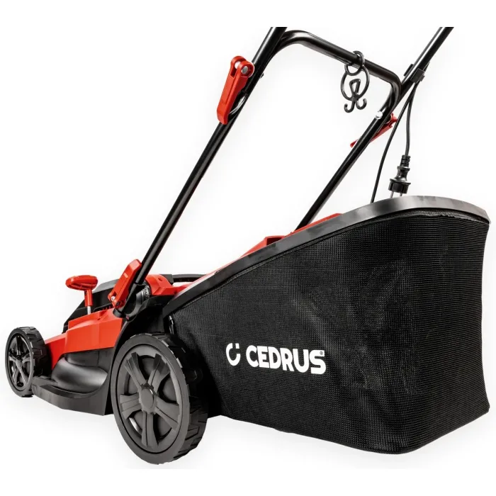 Електрическата косачка Cedrus KE40 е ГОЛЯМА и МОЩНА косачка и мощно устройство с мощност 1800 вата и ширина на косене 40 см . Тя има функция за събиране на трева в обемен кош от 45 литра , а освен това специален индикатор за пълнене ще информира оператора на косачката, когато кошът за трева е пълен. Централно регулиране на височината на косене от 25 до 75 мм . Електрическата косачка за трева Cedrus KE40 е мощно устройство с мощност 1800 вата и ширина на косене 40 см. Централно регулиране на височината на косене от 25 до 70 мм. Капацитетът на коша на косачката е 45 литра. Комфортът при работа ще бъде улеснен от големите задни колела, което улеснява воденето на машината по тревата и шофирането по неравен терен.