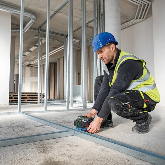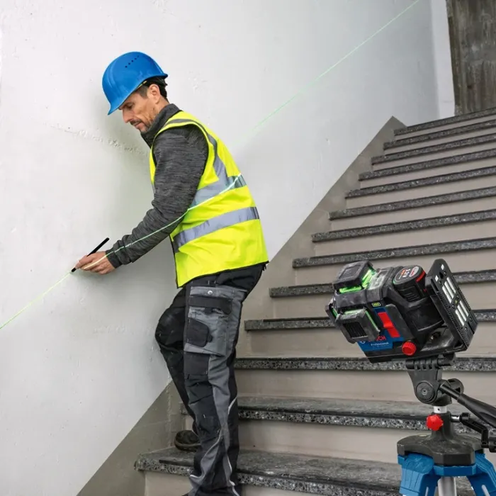 Подходящ е за строителни работници, които поставят гипсокартон, монтират стойки в дървени прегради или подравняват рамки за прозорци или врати, както и за монтиране на окачени тавани и тръбопроводи и подравняване на контакти. Може да се захранва от 3 източника - литиево-йонни батерии 12 V и 18 V или алкални батерии с размер C. Без приемник максималният му обхват е 35 м, а с приемник нараства на 120 м и нивелира с точност 0.3 мм/м. Оборудван е с вградена стойка със силни магнити и фино регулиране на завъртането. Корпусът и лазерните прозорчета са подсилени с гума, а това, заедно със степента на защита IP65 го прави подходящ за използване в най-тежките строителни условия. Приложението Levelling Remote позволява отдалечено управление на линиите чрез смартфон. Линейният лазерен нивелир Bosch GLL 18V-120-33 CG прожектира три 360° зелени лазерни линии с 4 пъти по-голяма видимост от червените лазерни лъчи.