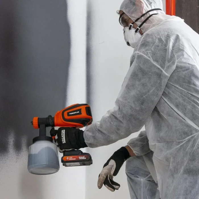 Докато работите с пистолет за боядисване, се препоръчва да носите маска, за да предотвратите вдишването на вредни химикали. Продуктовата гама на Kreator предлага богат избор от защитно облекло, като предпазни средства за слуха, маски, предпазни очила и много други.