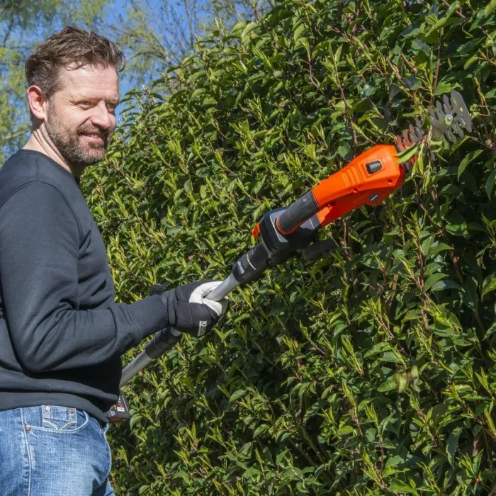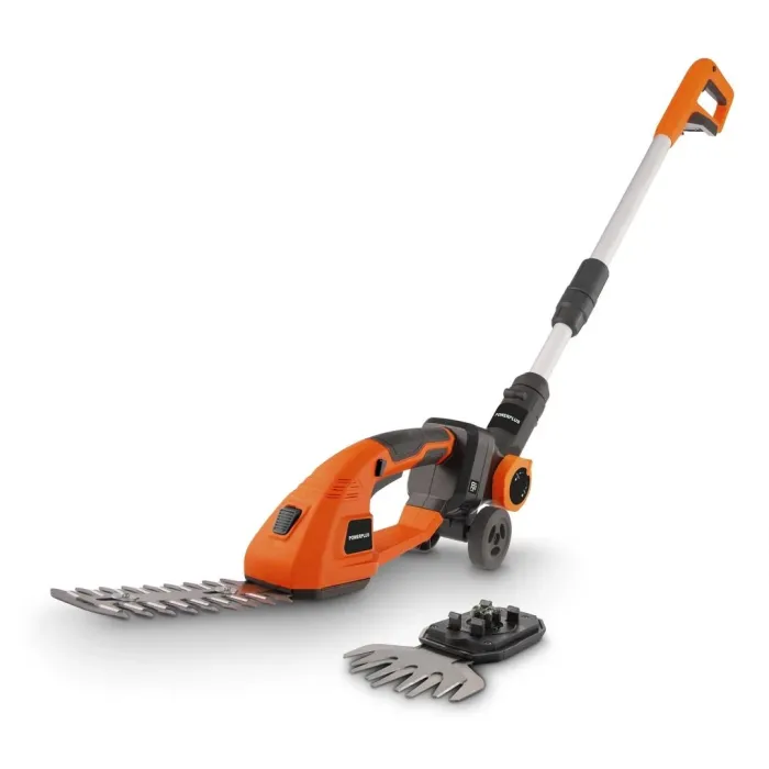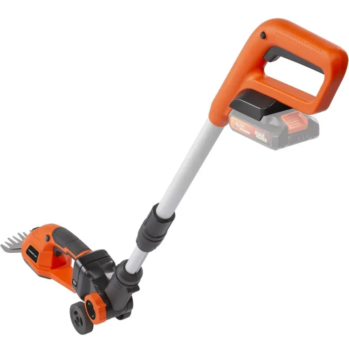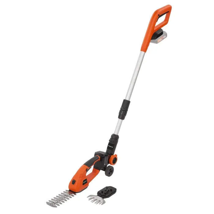 Ако вашата трева или храсти се нуждаят от бързо подрязване, тези 4-в-1 ножици за трева и храсти с батерии са идеалният инструмент. Използвайте ги със или без телескопичната дръжка. Този практичен градински инструмент е идеален за малки градински задачи и е оборудван с острие с ширина 90 мм за косене на трева, както и с острие с дължина 190 мм за подрязване на живи плетове и храсти.