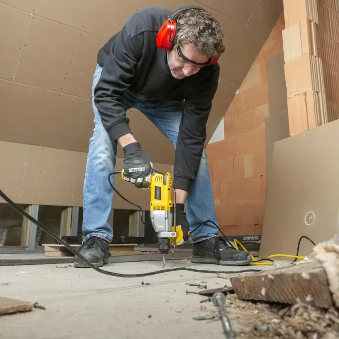 Използвайте тази ударна бормашина с мощност 1200 W за пробиване на отвори в твърди материали като дърво, стомана и бетон. Можете да я използвате за пробиване и ударно пробиване. Тя може да пробие до 13 мм през стомана, 20 мм през бетон и до 45 мм в дърво.